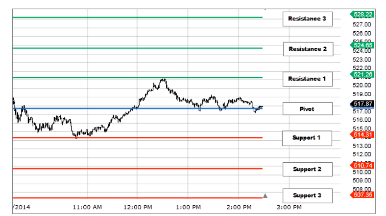 Pivots Points are price levels chartists can use to determine intraday support and resistance levels. Pivot Points use the previous days Open, High, and Low to calculate a Pivot Point for the current day. Using this Pivot Point as the base, three resistance and support levels are calculated and displayed above and below the Pivot Point.